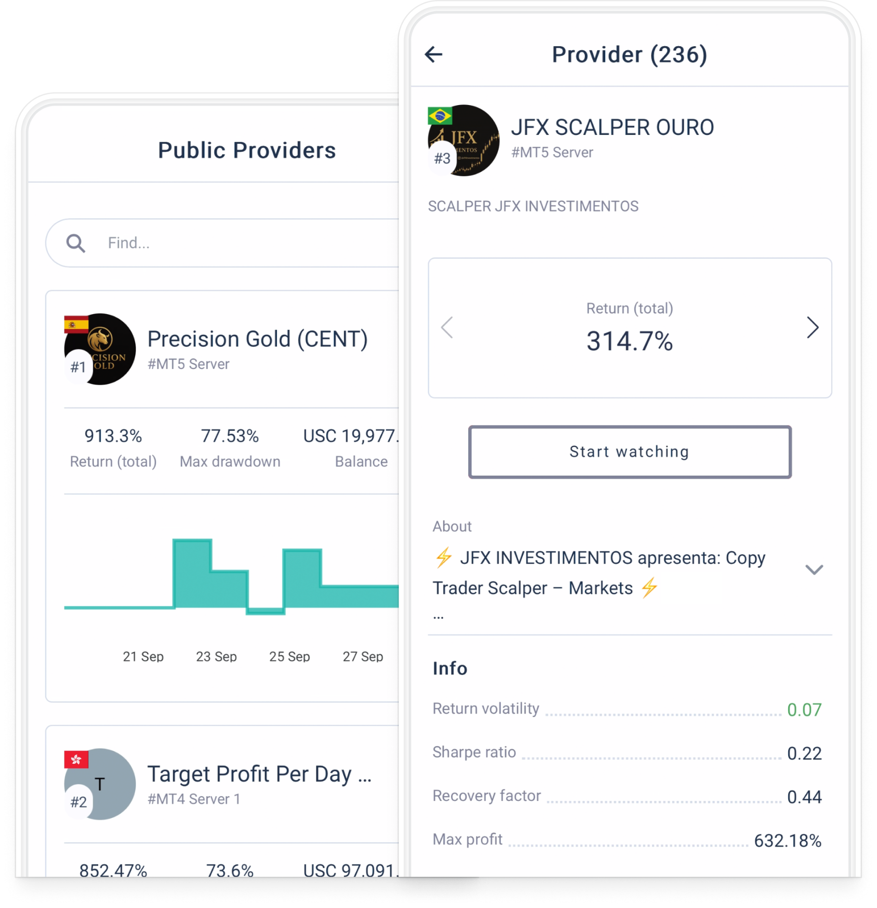 You can browse performance stats, risk levels, and past results of traders before deciding who to copy.